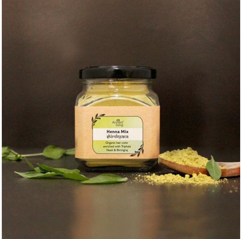Henna Mix is a plant-based hair treatment, to add colour and nourishment. These plants based ingredients have been grown in their natural habitat and have not been subject to any chemical treatment or modification. All the natural nutrients are thus well preserved. They have the highest level of herb concentration. This potent formula contains various precious herbs and provides a natural alternative to chemical colour treatments. Henna and Neeli are two natural, safe hair colourants for hair trusted over generations. Bhringraj helps in darkening of hair. It is one of the prime herbs used in hair care.This pack is enriched with Triphala or 3 fruits which are-Amalaki, Bibhitaki and Haritaki. It is considered as a tridoshic rasayan having balancing and rejuvenating effects on the three constitutional elements that govern human life namely- Vata, Pitta and Kapha. Methi is rich in protein and a natural source of minerals. Helps in making hair soft while giving strength. Champi or head massage with Ancient Living hair oils is recommended weekly to enhance the benefits of this mix.