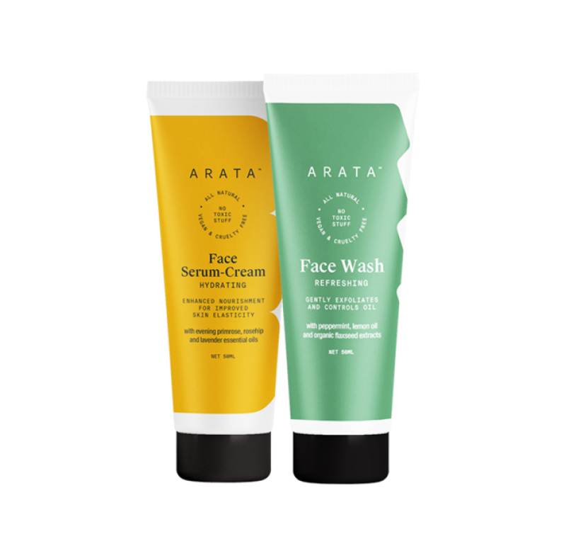 Our 2-step hydrating face combo provides gentle exfoliation, oil-control, and improved skin elasticity. Cleanse your skin with our highly-effective, non-toxic formula, and follow up with our face serum-cream that’s absorbed instantly - moisturising, decreasing inflammation, boosting circulation, and tightening pores with an aromatic mixture of essential fatty acids and vitamins. Includes our Face Serum-Cream (50ml) and Face Wash (50ml).