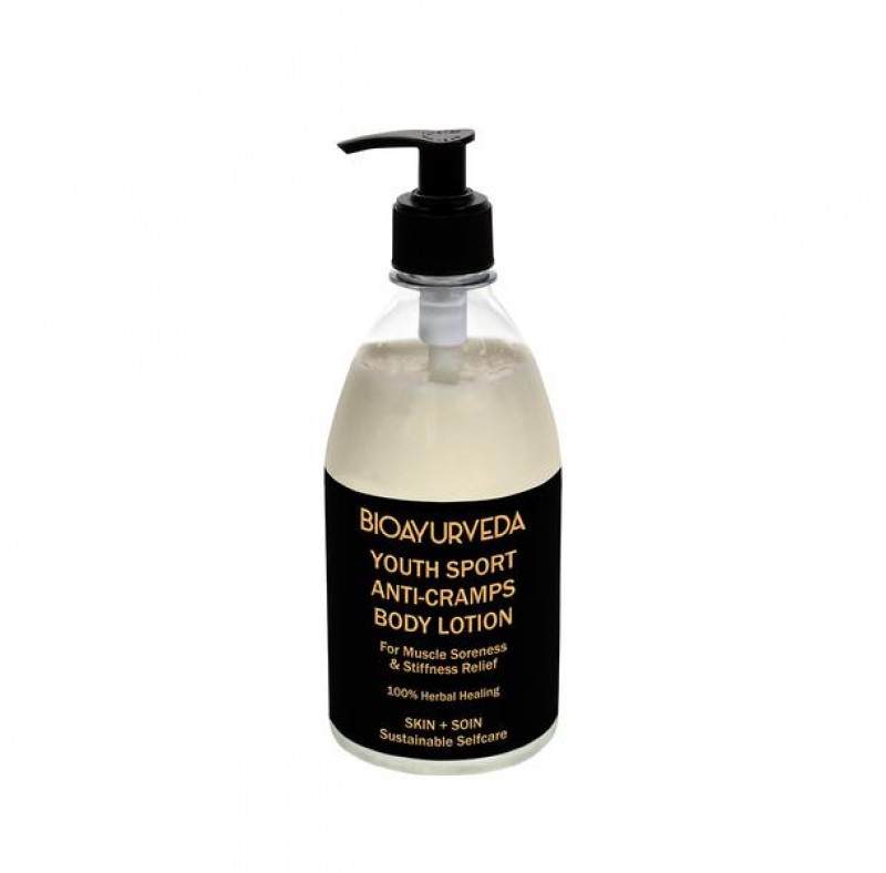 Youth Sport Anti-Cramps Body Lotion is a unique blend of organic herbs, along with vital minerals and essential & natural oils that are formulated to help alleviate muscle and joint pain, releasing stiffness and soreness. With therapeutic and nourishing effects, it supports and heals the body from cramps, aches, pain, swelling, and inflammation. Healing and pacifying, it induces stress relief and relaxation. Packed with powerful active natural ingredients like Aloe, Chamomile, Turmeric, Arnica, Lemongrass Oil, Almond Oil, Tea tree oil, Wintergreen Oil, It not only calms and balances energy levels, inducing relaxation and stress relief but also moisturizes and hydrates skin at the same time.