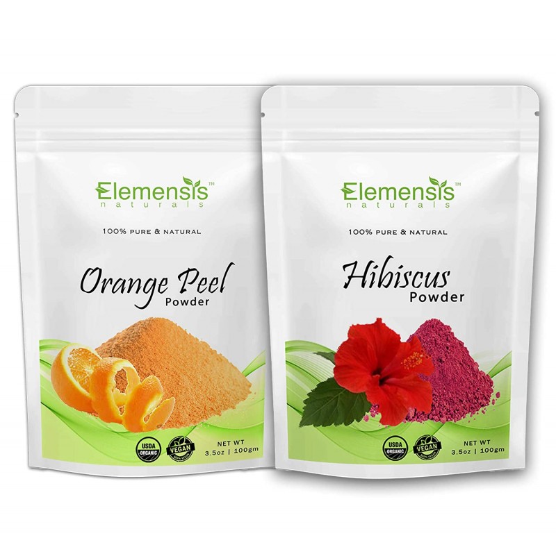 Hibiscus Powder - The hibiscus plant has exotic, vibrant petals that are fanned in the shape of a trumpet. It blooms in a variety of colours including red, pale yellow and pink and has long been used as an ingredient in herbal teas and medicines, traditionally to help with loss of appetite and even colds. Orange Peel Powder - It comes with Vitamin C and Antioxidants which improves skin and reduces effect of ageing. It can be used for Hair which will make it soft, shiny and manageable.