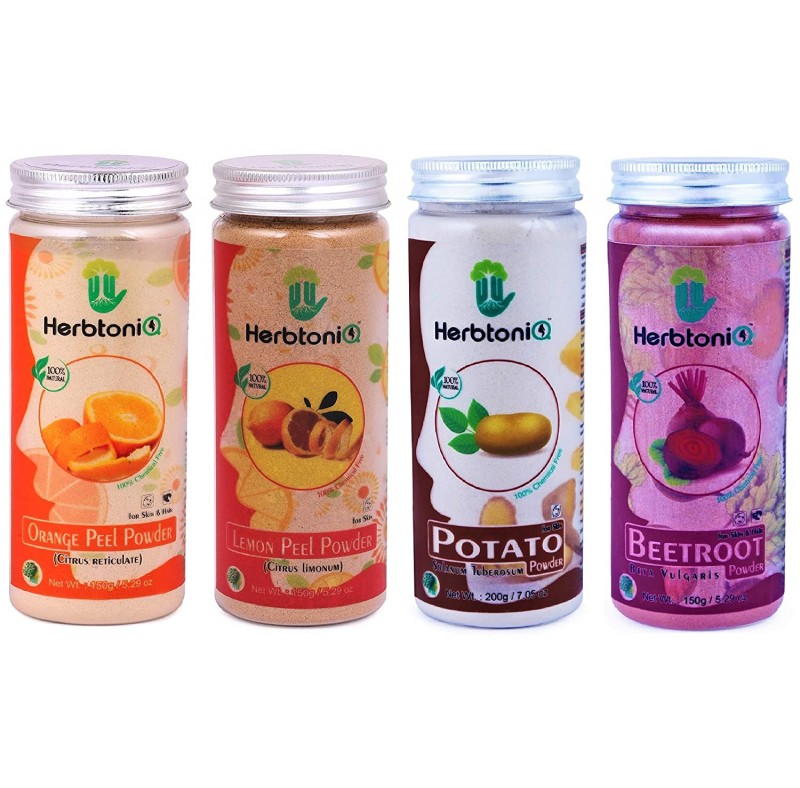 Pack Of 4: Orange Peel Powder 150g, Lemon Peel Powder 150g, Potato Powder 200g And Beetroot powder 150g