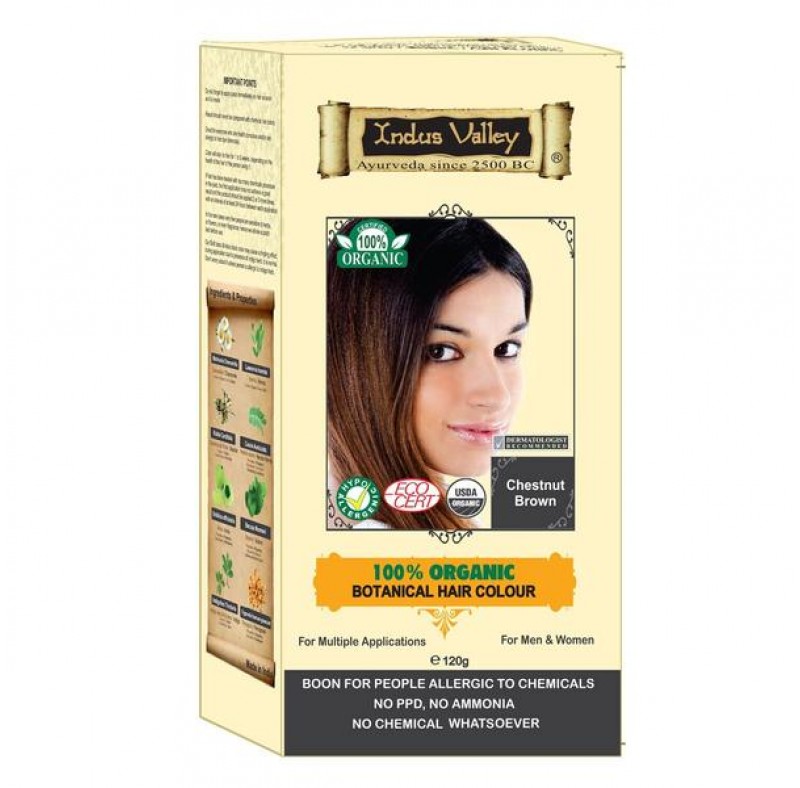 Chestnut Hair Color is made up of 8 certified organic herbs. Certified Herbs like Amla, Indigo, henna, Chamomile, Fenugreek seeds, Rubia Cardifolia, Neutral Henna & Brahmi Leaves gives color to style your hair with organic herbs. These herbs also help to remove hair problems like dandruff, hair fall dryness, premature graying, helps in locking color into hairs. Regular usage of 100% Certified Organic Chestnut hair color helps in re-growth & volume to hairs, helps in making hair shiny, bouncy and healthier & nourishes your hairs and also cover your grey hairs into Chestnut. It contains less indigo & less henna but more chamomile, you can style your hair with the combination of organic herbs.