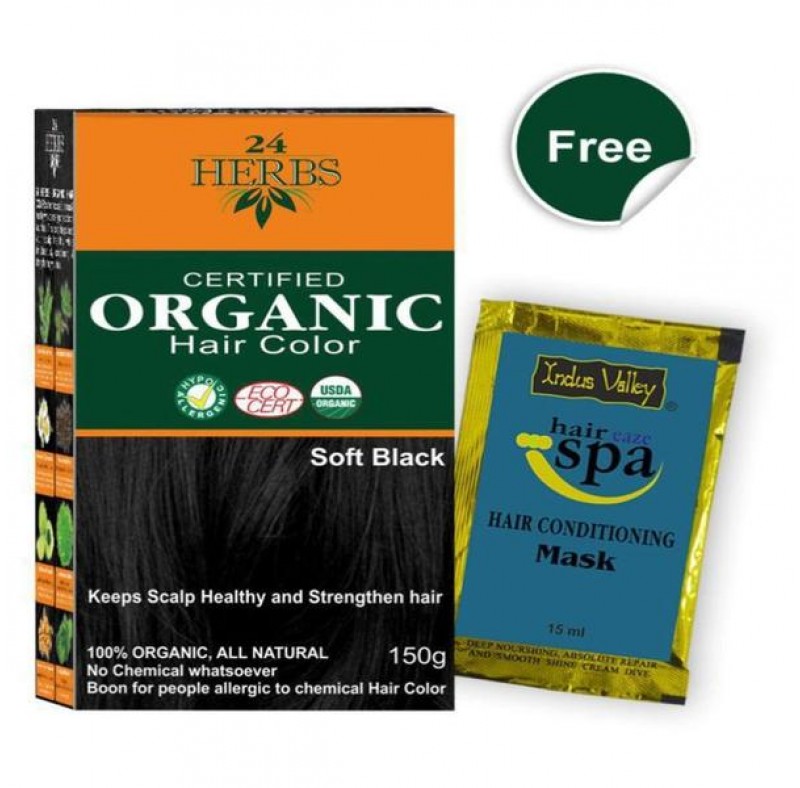 24 Herbs Certified Organic Hair Color (Soft Black)herbal hair color consists of eight chosen herbs that have proved to be highly beneficial for hair with their multiple range of benefits. With some of the best ingredients as its composition this hair color suits all the essential requirements of coloring as well as caring for your hair. The Indus Valley Spa Hair Mask works a daily moisturizing, deep nourishing, absolute repair and detangling mask that leave seven highly-textured, coarse hair looking soft, shiny, and manageable. The silky texture makes it easy to apply and distribute through wet hair and rinses easily so hair never feels limp or greasy. Ideal for those with sensitive, itchy scalp is recommended for all hair types.