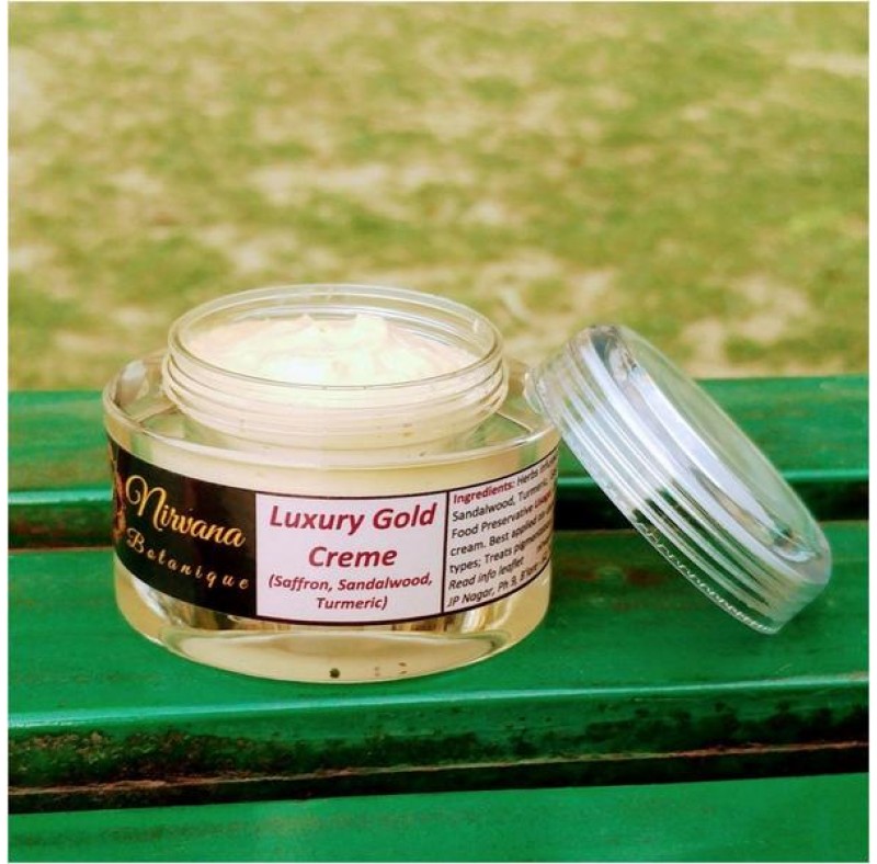 Since ancient times, Saffron, Sandalwood & Turmeric have been popularly used in skin care.This luxury cream is a blend of natural herbal ingredients that keep the skin bright, hydrated & glowing. It is rich in Vitamin E, which helps block free radicals from the body, and slows down the aging process. The base ingredients are infused with rich potent herbs which are a treasure for healthy skin.