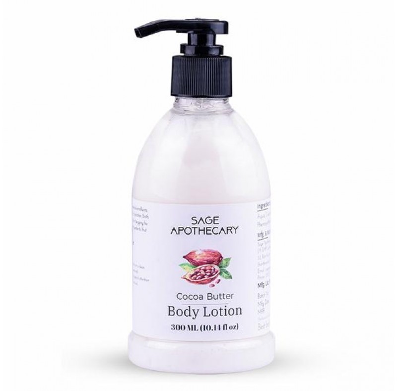 Get a satin-smooth skin you always dreamt of. Pure cocoa butter, vitamin E, and cherry blossom essential oil will give your skin a perfect caress. For times when you need some pampering and extra care for your dull and tired skin. This hydrating body butter lotion is the perfect elixir skincare. It is derived from 100% natural ingredients, paraben-free, cruelty-free, and dermatologically tested. Rich cocoa butter body cream intensely moisturizes for healthy, radiant skin. what it does indulge in this exotically rich body cream enriched with the goodness of natural cocoa butter that absorbs easily and eliminates dryness and dullness, leaving your skin intensely moisturized, healthy, and radiant. Sage Apothecary-rich cocoa butter body cream improves the moisture content of skin by helping retain moisture between skin layers and preventing moisture loss. The vitamin e in cocoa butter protects skin from damage due to the harmful effects of the sun and pollution. The rich cocoa butter body cream is non-greasy and contains 100 percent herbal actives. Key ingredient cocoa butter retains moisture, nourishes, and protects skin with long-lasting hydration, leaving skin soft and smooth due to its intense emollient property. The vitamin e in cocoa butter protects skin from damage. Directions for use apply Sage Apothecary rich cocoa butter body cream generously and evenly using a circular motion. Pay special attention to severely dry areas, gently massaging the body cream in. Best used after bathing when your skin is most receptive to hydration.