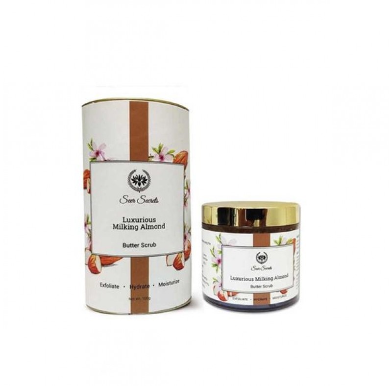 Experience an intense exfoliation with our luxurious milking almond butter scrub. It smoothens and softens skin and is designed to gently buff away dead skin cells and leave skin feeling soft. Enriched with Real almond powder embedded in Cocoa Butter & Pumice Stone, this butter scrub is for all skin types. It gently polishes and exfoliate the skin surface and buff away dead cells, leaving your skin feeling irresistibly soft and smooth to touch. This Luxurious butter scrub is beneficial for areas that tend to be rough and dry skin such as the body, face, heels, knees, and elbows. After first use itself, your skin will feel soft and smooth to touch.