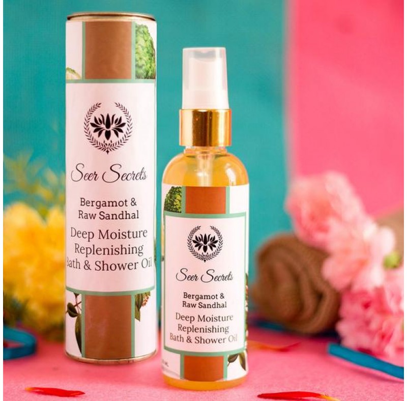Quench into a woody redolence with this luxurious Seer Secrets Bergamot & Raw Sandhal Deep Moisture Replenishing Bath & Shower Oil. With a ligneous sandalwood note and the essence of bergamot, this deep moisture replenishing bath & shower oil provides a shiny and younger looking skin. With an energizing scent, the formula is infused with sandalwood & bergamot essential oil which provides the essence of energization. Woody notes in a formula infused with Coconut distillate stimulate your mind and spirit. It makes the skin shiny, helps skin healing and gives a younger looking skin.