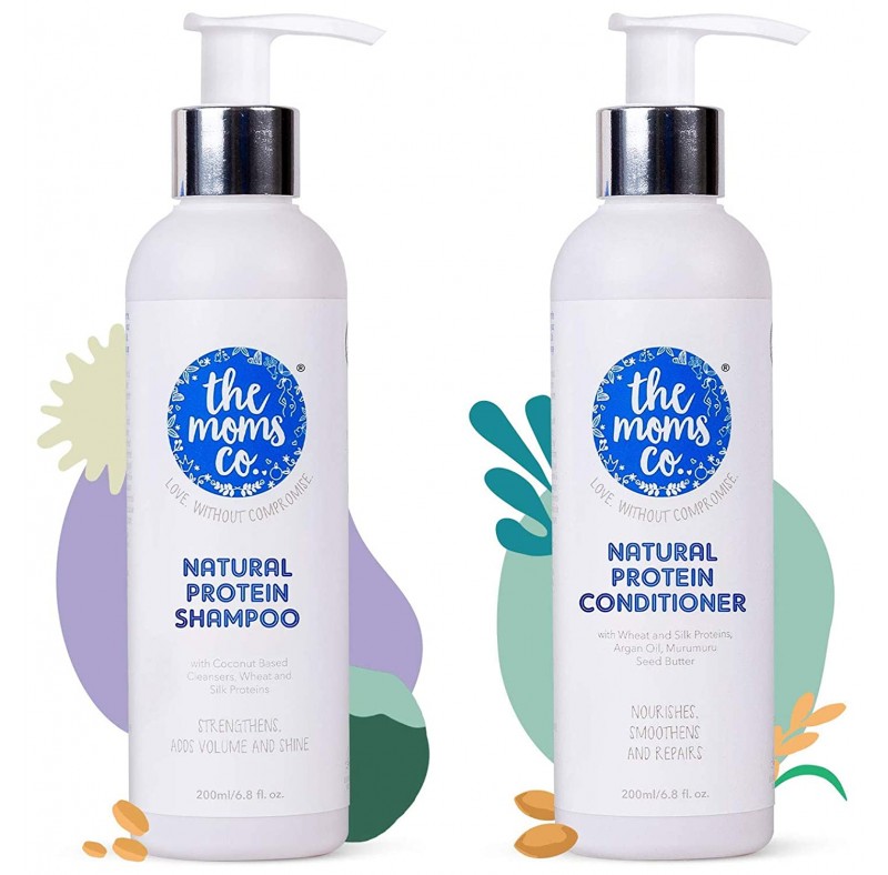 Natural Protein Shampoo (200ml) to Strengthen Hair, Add Volume, Shine and Reduce Hair Fall - 6.8 OzThe Moms Co. Natural protein shampoo is India's only made safe, all-natural, Australia-certified toxin-free coconut based shampoo. Typical rich-lathering shampoos rob your hair of their protein and leave a layer of chemicals causing dandruff and hair fall! With the first use of our shampoo, you're well on your way for your first hair detox, and in 4-5 washes you should start seeing a visible difference! Suitable for anyone looking to reverse the harmful effects of chemicals, hair treatments and pollution. It is a combination of gentle coconut based cleansers that gently clean and are safe even as a hair colour shampoo or keratin shampoo. Protect your skin The natural way with luxurious hair care products This hair fall treatment is a wonderful sls free shampoo regular cleansing what's in: hydrolysed silk protein and wheat protein absorb into your hair and locks in moisture, adding shine, volume and preventing breakage prevents hair fall with Beetroot extract supports hair growth with panthenol and vitamin B5 what's out our sulphate free shampoo and paraben free shampoo is made without sls, sles, dea/tea, phenoxyethanol, synthetic fragrances, pegs and many other potentially harmful chemicals, safe for: everyone, including pregnancy, postpartum, breast feeding, baby, certified txin free and made safe by safe cosmetics Australia, Australia allergy certified, dermatologically tested.Natural Protein Conditioner (200 ml)Natural protein conditioner is India's only made safe, all-natural, Australia-certified toxin-free coconut based hair detox kit. Typical rich-lathering shampoos rob your hair of their protein and leave a layer of chemicals causing dandruff and hair fall! With the first use of our conditioner, you're well on your way for your first hair detox, and in 4-5 washes you should start seeing a visible difference!.