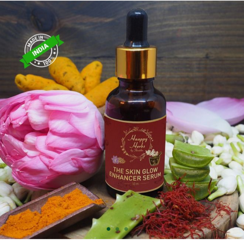 The Glow Enhancer Serum, a saffron based serum, contains Aloe vera, Cucumber and Manjishta extracts. Saffron helps in reducing pigmentation, brown spots and other skin blemishes and makes the skin look bright and radiant. Manjistha has anti-inflammatory properties, making it a good choice for common skin problems such as open pores and eczema. It is 100% herbal and gives an instant glow leaving a natural shine on the face. The Serum can be used both daily and on special occasions leaving the skin look healthy and nourished always.